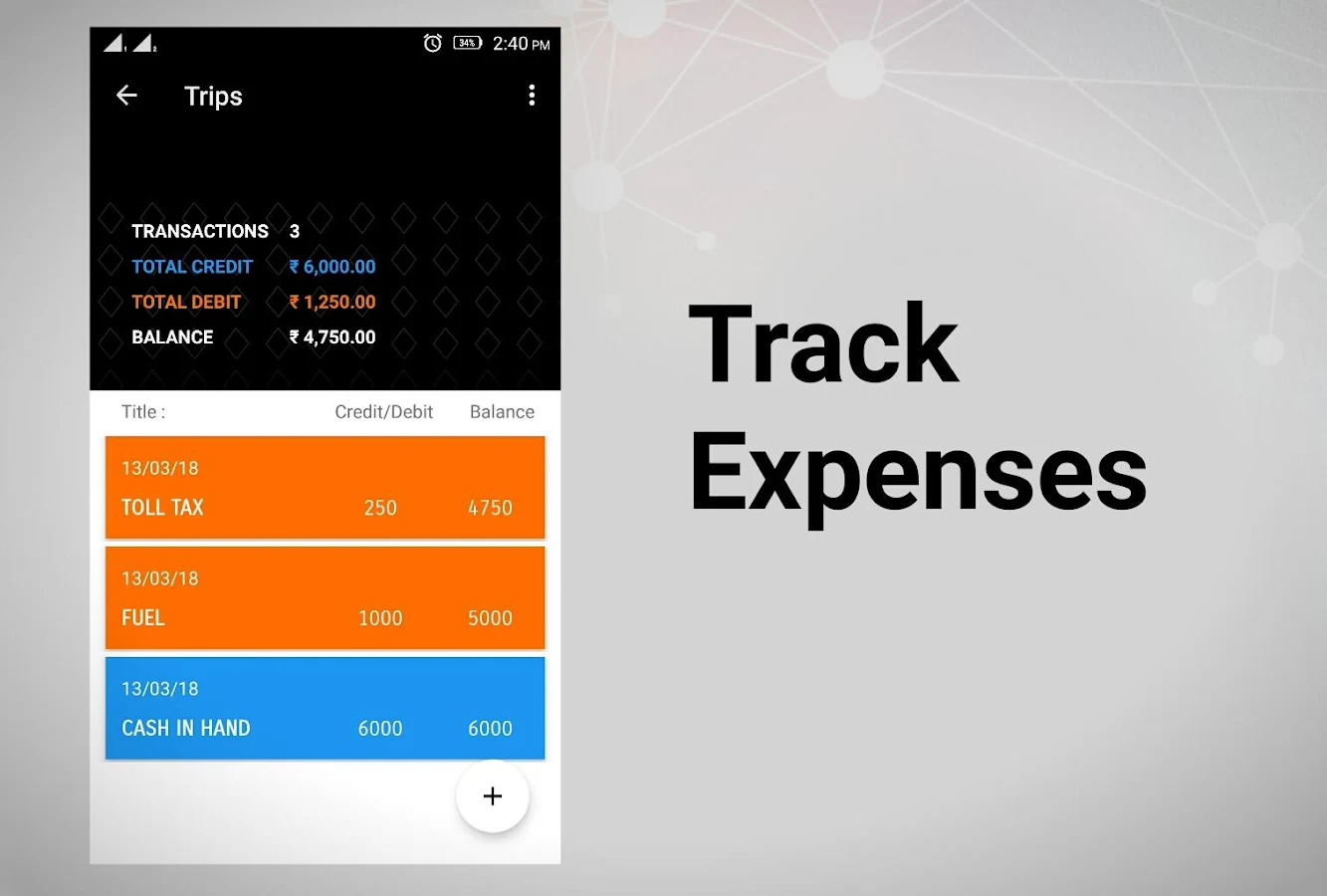 Accounts Manager lets you keep track of your daily money transactions by storing credit and debit history. It eliminates the need of carrying a pocket diary and does the balance calculation on its own.